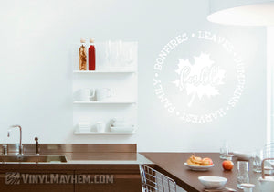Fall distressed leaf Pumpkins Harvest Family vinyl sticker. Perfect fall décor for any application.