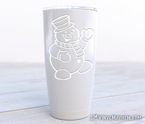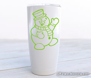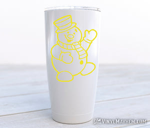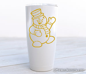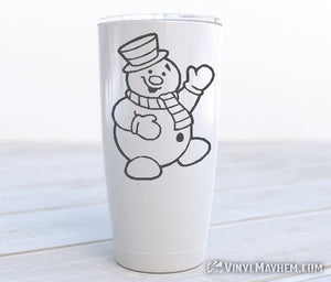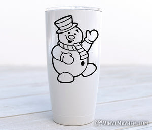 Snowman with hat and scarf waving vinyl sticker. A great holiday and seasonal design.