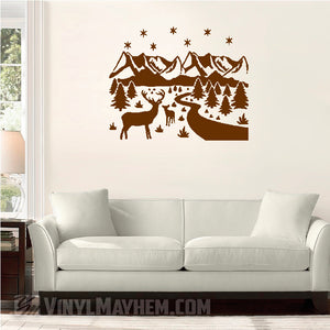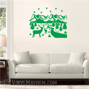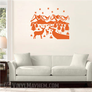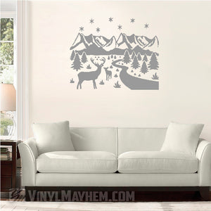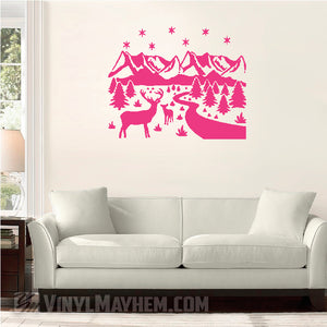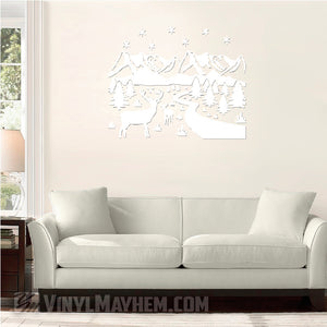 Deer wildlife winter scene vinyl sticker.