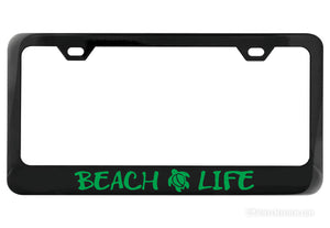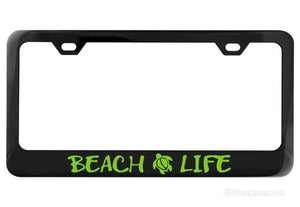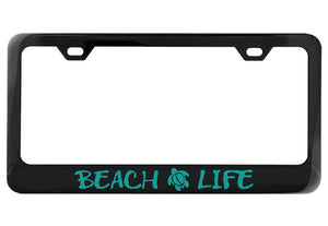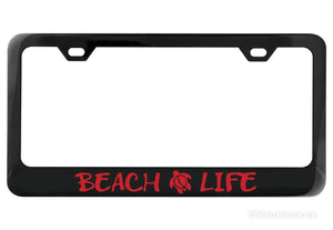Make a statement with our unique Beach Life black license plate frame. This frame is perfect for anyone who loves the beach, and a great way to show off your style.