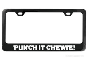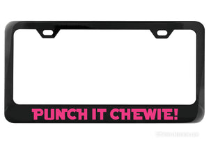 Show your rebel spirit and your love of Star Wars with our Punch It Chewie! black license plate frame! Perfect for all the scruffy-lookin' nerf herders out there - no Wookiees required!