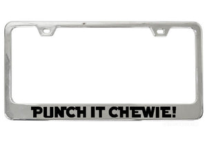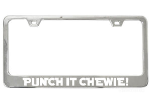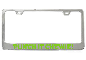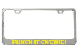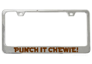 Show your rebel spirit and your love of Star Wars with our Punch It Chewie! chrome license plate frame! Perfect for all the scruffy-lookin' nerf herders out there - no Wookiees required!