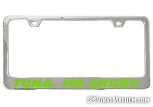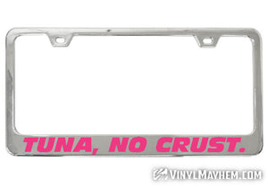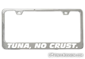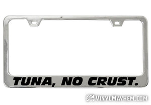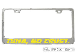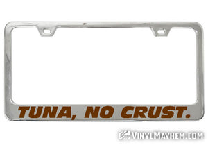 Make a statement with our Tuna No Crust chrome license plate frame. This frame celebrates an iconic car-culture quote that’s become a fan favorite around the world. Show your passion for speed, style, and originality with a frame that speaks to every true driver.