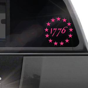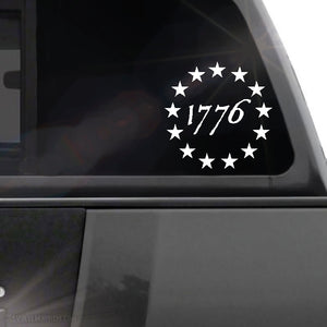 Our 1776 Constitution style text stars in circle vinyl sticker will stand out on your favorite item and is a stylish symbol of American pride. A great patriotic design, created by one of our in-house graphic designers.