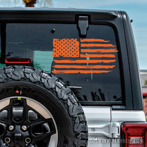 American Flag distressed vinyl sticker. One of our most popular designs, created by one of our in-house graphic designers. This unique design will turn heads and spice up the look of your car, laptop, or any other surface you decide to stick it on. It's the perfect way to show off your patriotism and unique style.