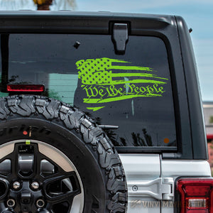 American Flag We the People distressed waving vinyl sticker. Celebrate your patriotism and add a touch of pride in the USA to any surface.