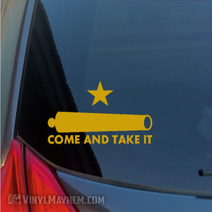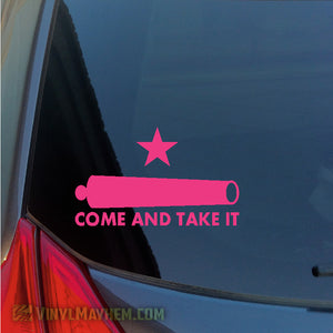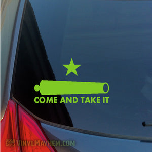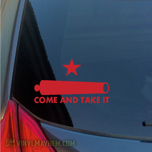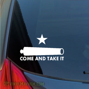 Show your patriotism with this Come And Take It Cannon vinyl sticker! Based on the iconic American Revolutionary War design, this sticker is perfect to display on any car, window, laptop, or even hydration pack! Let the world know you won't back down with this bold and powerful statement!