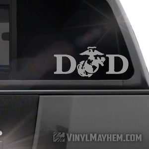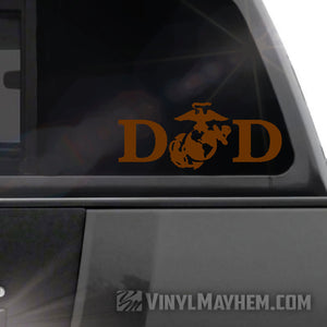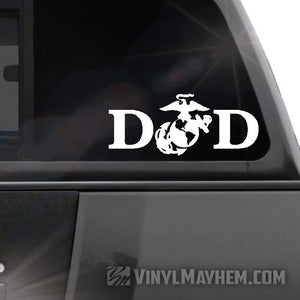 Marine Dad vinyl sticker. Show off your Marine Dad pride with this eye-catching design. Perfect for accessorizing all of your favorite items or inspiring others with a meaningful tribute.