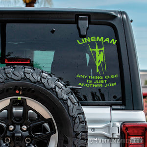 Show your pride in the trade that keeps the lights on with our Lineman – Anything Else Is Just Another Job Vinyl Sticker. Featuring a bold silhouette of a lineman climbing the pole, this decal honors the skill, dedication, and hard work of those who power our world.
