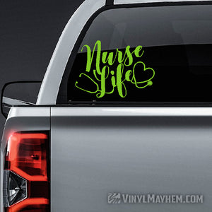 Celebrate your dedication to nursing with this charming vinyl sticker featuring a heart entwined with a stethoscope. Perfect for personalizing cars, windows, or laptops, it proudly showcases your commitment to caring for others every day.