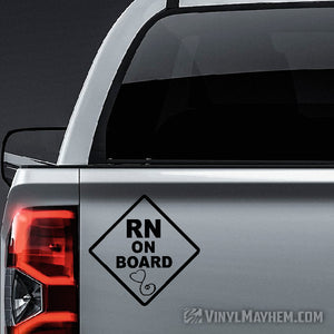 This RN on Board with stethoscope caution sign vinyl sticker is a Vinyl Mayhem exclusive, created by one of our in-house graphic designers.