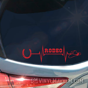 Rodeo Heartbeat vinyl sticker. Bring the wild west to your space with this bold sticker. It's sure to make a statement wherever you stick it.