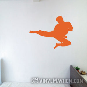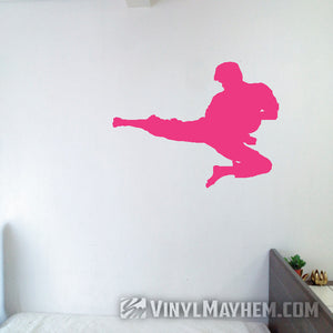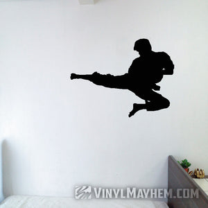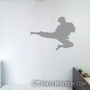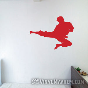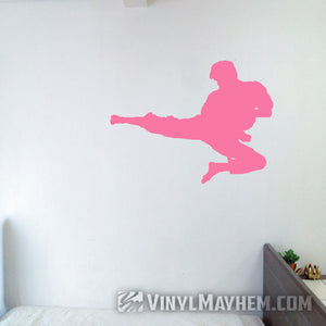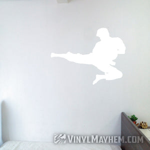Elevate your space with our Martial Arts Flying Side Kick Silhouette Vinyl Sticker. Perfect for rooms, vehicles, and more, this sticker adds a touch of strength and grace to any surface. Empower yourself and embrace your love for martial arts with this versatile and stylish decal.