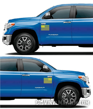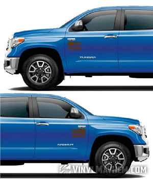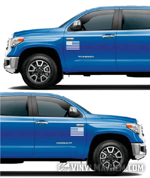 Show your bold patriotism with this American Flag directional set vinyl sticker. Designed to be applied on each side of your vehicle or the back window, these striking decals command attention wherever you go. Making a daring statement of pride and freedom with unmistakable American spirit!