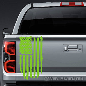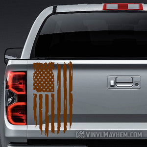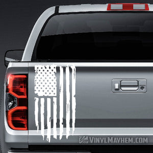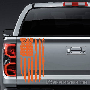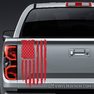 Celebrate your patriotism with our American Flag distressed truck tailgate vinyl sticker. Our durable vinyl decal adds a rugged, vintage look to your vehicle while proudly displaying your love for the USA.