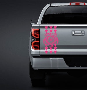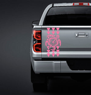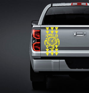Let your ride reflect your love of Hawaiian with our Maka Ihe tribal triangle sticker. This high-quality vinyl truck tailgate sticker is perfect for showing off your unique sense of style. Scaled at 19" tall and 7.5" wide to perfectly fit most truck beds. Created by one of our in-house graphic designers.