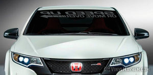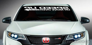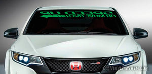 Speed Up Or Move Over reversed vinyl windshield sticker