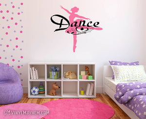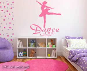 Our Ballet Dancer two-color vinyl sticker works perfectly in any home as a wall graphic, or can be applied almost anywhere. Color options are for the "Dance" lettering only. The Ballet Dancer silhouette comes Pink as shown.