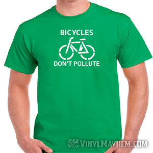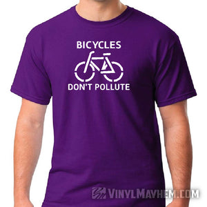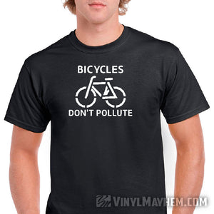 Show your love of cycling, fitness, and the environment with our Bicycles Don't Pollute T-Shirt. Stride, soar, and speed into the future in this sustainable tee – it's a look that says you're ready for anything!