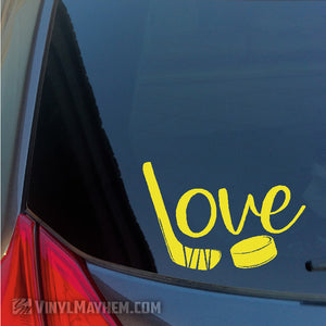 Score! Show your love for ice hockey with this awesome vinyl sticker. Featuring a puck and stick design, it's perfect for showing your support of your favorite sport.