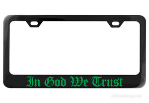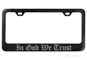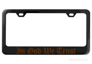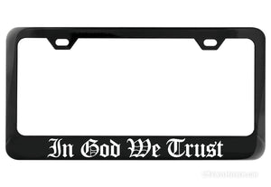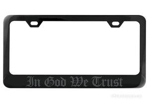 Bring some personality to your ride and show off your religious and political pride with our attractive In God We Trust black license plate frame. Perfect for any vehicle, our exclusive Old English text design is sure to make a statement.