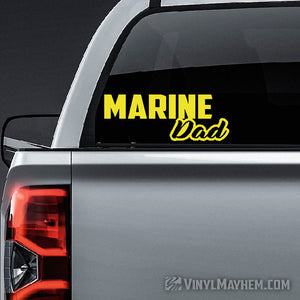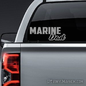 This Marine Dad script vinyl sticker design is a Vinyl Mayhem exclusive, created by one of our in-house graphic designers.