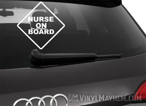This Nurse On Board caution sign vinyl sticker is a great way to display your profession while also keeping yourself safe! Let drivers know that a nurse is in the area with this fashionable and impactful sticker.