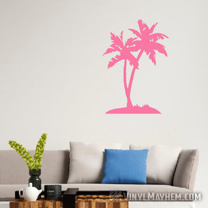 Palm Trees with small island vinyl sticker.