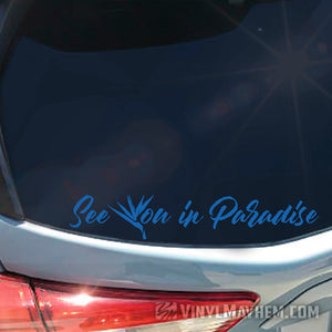 Our See You In Paradise flower with script vinyl sticker features a birds of paradise flower and is a perfect complement to any outdoor or indoor space. A Vinyl Mayhem exclusive design, created by one of our in-house graphic designers.