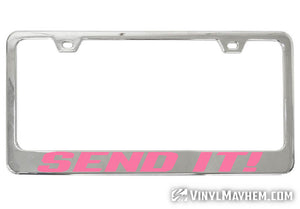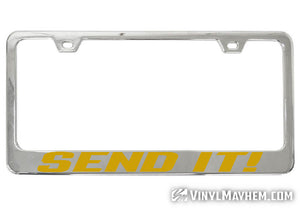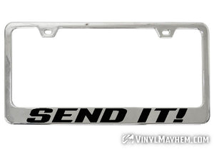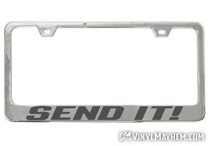 Add some style to your car with our Send It! chrome license plate frame. This exclusive Vinyl Mayhem design is perfect for any Extreme Sports enthusiast. Show your love for the action-sports lifestyle while keeping your ride looking cool.
