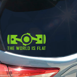 Celebrate your love for horizontally opposed engines with our The World Is Flat Pistons Vinyl Sticker. Featuring a bold piston and crank design with the playful phrase “The World Is Flat,” this decal is a must-have for any true car enthusiast who appreciates balance, engineering, and performance. A fun and subtle nod to flat-engine culture, this design adds attitude and humor to any ride.