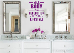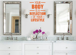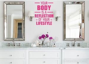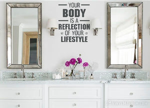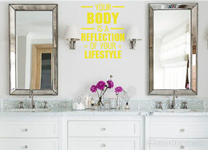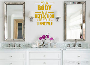 Motivate yourself with the motivational phrase Your Body is a Reflection of your Lifestyle vinyl sticker. Our eye-catching design is ideal for posting in any location you desire. It's the perfect way to add some inspiring words to your daily life.